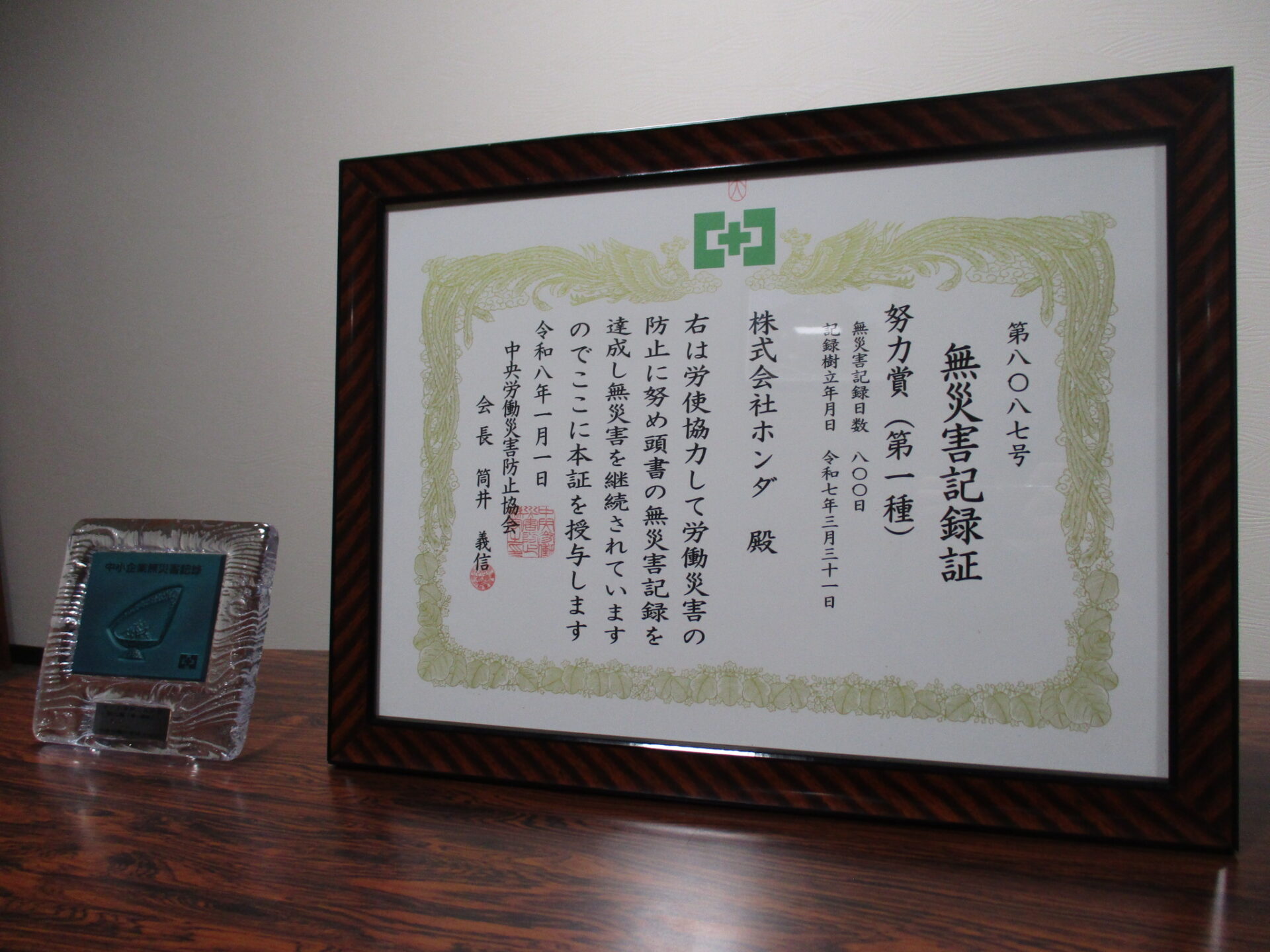 このたび当社は、継続的な安全管理と労働災害防止への取り組みが評価され、無災害記録証(努力賞)を取得いたしました。(取得日:2026年1月1日)